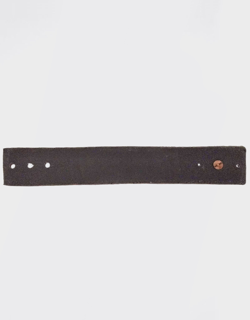 Bracciale grigio e marrone con piastra superiore in ottone e chiusura a clip forato.